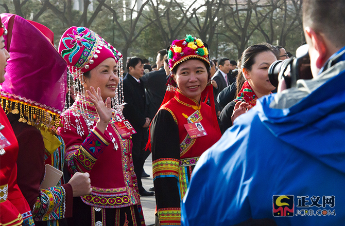 3月5日上午,第十二屆全國(guó)人民代表大會(huì)第四次會(huì)議在人民大會(huì)堂開幕,國(guó)務(wù)院總理李克強(qiáng)作政府工作報(bào)告,審查計(jì)劃報(bào)告和預(yù)算報(bào)告。廣西代表團(tuán)代表著盛裝出席會(huì)議。正義網(wǎng)記者程丁攝