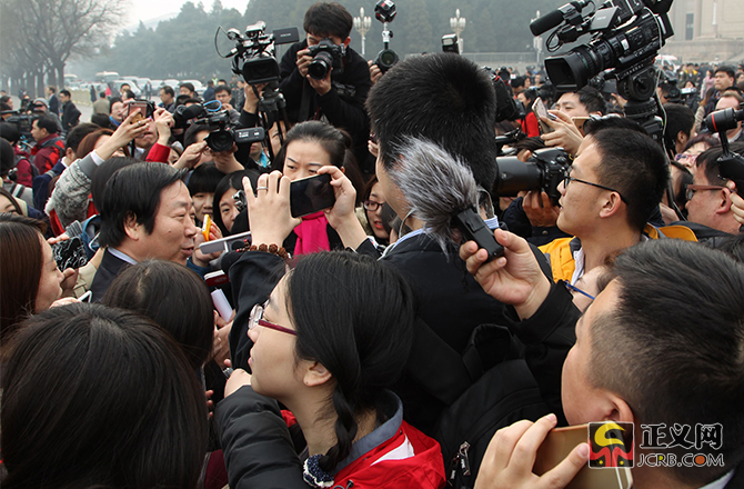 3月3日,中國人民政治協(xié)商會(huì)議第十二屆全國委員會(huì)第四次會(huì)議在北京人民大會(huì)堂開幕。政協(xié)委員現(xiàn)場接受記者采訪。本報(bào)記者徐伯黎攝