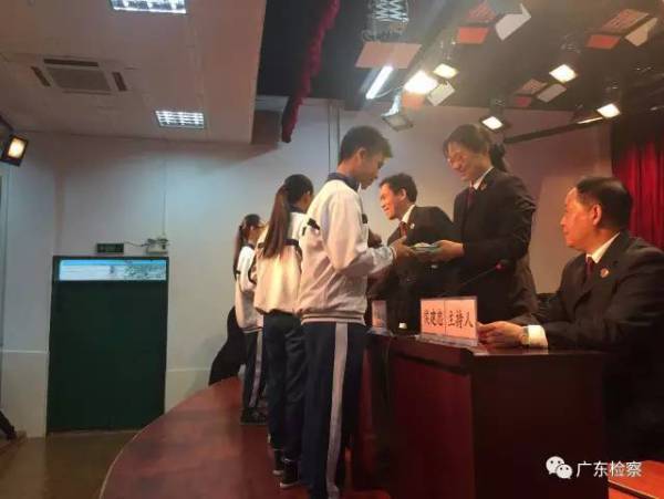 下午15時,來自省、市、區(qū)三級檢察機關的未成年人檢察工作辦公室負責人及檢察官代表聯(lián)同教育局、團區(qū)委及學校的相關領導共同舉行了簡單而隆重的“法治進校園”活動啟動儀式,向學生代表贈送了青少年犯罪預防畫冊,并觀看了反映檢察機關未成年人附條件不起訴工作的法治宣傳微電影。