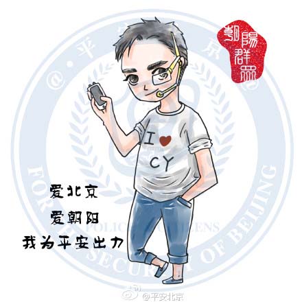 2015年8月,北京警方通過官方微博“平安北京”推出民警原創(chuàng)設(shè)計的“朝陽群眾”卡通形象。與此同時,“平安北京”還發(fā)布“手把手教你如何成為‘朝陽群眾’”等微博,以生動形象的方式,教群眾如何甄別違法犯罪線索,如何舉報和自我保護。