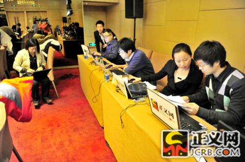 12月24日上午9時(shí),由正義網(wǎng)與騰訊微博主辦的“政法微博與社會(huì)管理創(chuàng)新”峰會(huì)將在北京召開(kāi)。與會(huì)嘉賓將就政法信息微博公開(kāi)現(xiàn)狀、突發(fā)政法輿情微博應(yīng)對(duì)機(jī)制、政法官員微博內(nèi)容規(guī)范、微博問(wèn)政與社會(huì)管理創(chuàng)新等問(wèn)題進(jìn)行探討。會(huì)議開(kāi)始前,正義網(wǎng)工作人員忙著做各項(xiàng)準(zhǔn)備工作。楊征 謝天維/攝