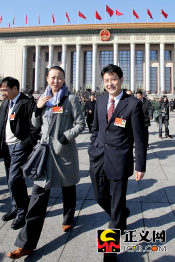 3月4日上午,十一屆全國(guó)人大四次會(huì)議召開(kāi)預(yù)備會(huì)。為中國(guó)女排發(fā)展作出貢獻(xiàn)的陳忠和代表與馮坤代表一起走出會(huì)場(chǎng)。傅偉/攝
