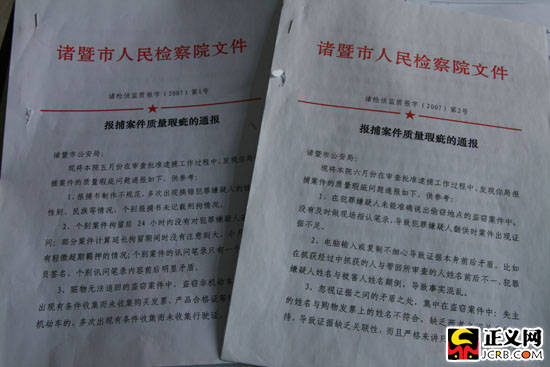 諸暨市人民檢察院自2007年下半年開(kāi)始實(shí)行案件質(zhì)量瑕疵通報(bào)機(jī)制,該機(jī)制是檢察院院在辦理批捕、起訴案件時(shí),對(duì)偵查機(jī)關(guān)在執(zhí)法過(guò)程中出現(xiàn)的一些輕微違法進(jìn)行收集并定期通報(bào)予以糾正的一種監(jiān)督方法。朱晶/攝