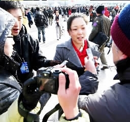 作為三位農(nóng)民工全國(guó)人大代表之一,來自上海的朱雪芹代表當(dāng)然不能被媒體記者“放過”。來者不拒,朱雪芹從容應(yīng)答。