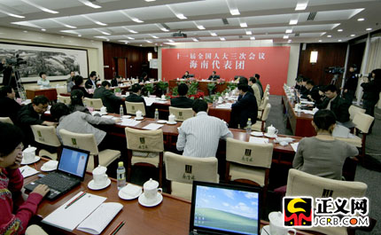海南省代表團審議“兩高”工作報告。傅偉 攝