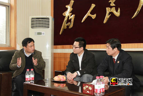 硤石監(jiān)獄監(jiān)獄長張?zhí)煜橄蛘x網(wǎng)記者介紹監(jiān)所檢察室的相關(guān)工作。姚宇/攝