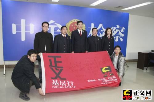 中牟縣人民檢察院檢察長(zhǎng)張捍衛(wèi)攜院黨組成員迎接“正義網(wǎng)基層行”采訪團(tuán)。姚宇 攝