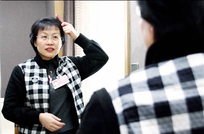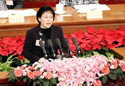 為了這次大會發(fā)言,甄貞委員特別用心地進(jìn)行了準(zhǔn)備。(見圖②)下午3時,全國政協(xié)十一屆二次會議第四次全體會議在人民大會堂準(zhǔn)時召開,當(dāng)主持人宣布“現(xiàn)在請甄貞委員作大會發(fā)言”時,只見甄貞委員從容地走上發(fā)言席,隨即,會場里回響起她略顯沙啞卻鏗鏘有力的聲音。(見圖①)